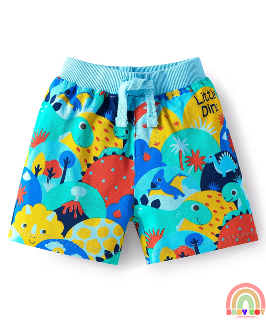 Single Jersey Knit Shorts with Stripes & Dino Print of 3 - Blue & Red