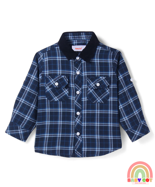 Cotton Woven Full Sleeves Checkered Shirt - Navy Blue