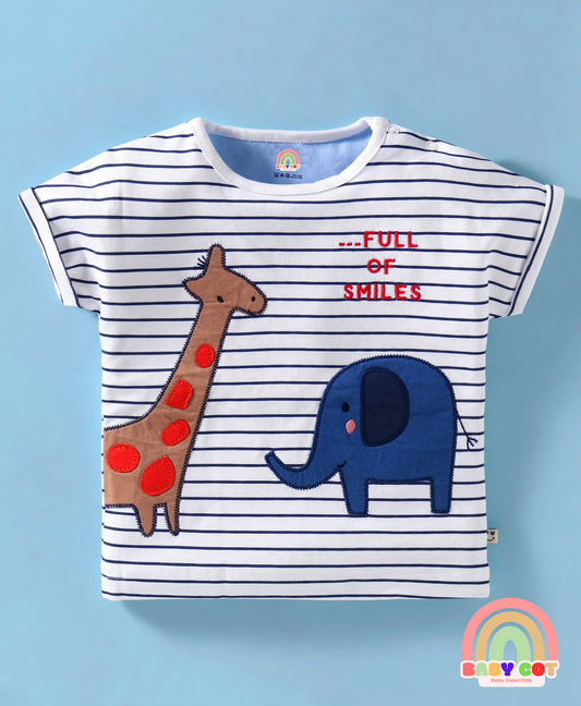 Interlock Knit Half Sleeves Striped T-Shirt & Shorts Set With Animal Print - White