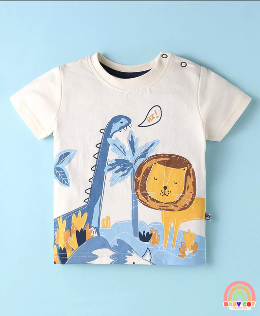 100% Cotton Knit Half Sleeves Onesies Animal Print Pack of 3 - Multicolour
