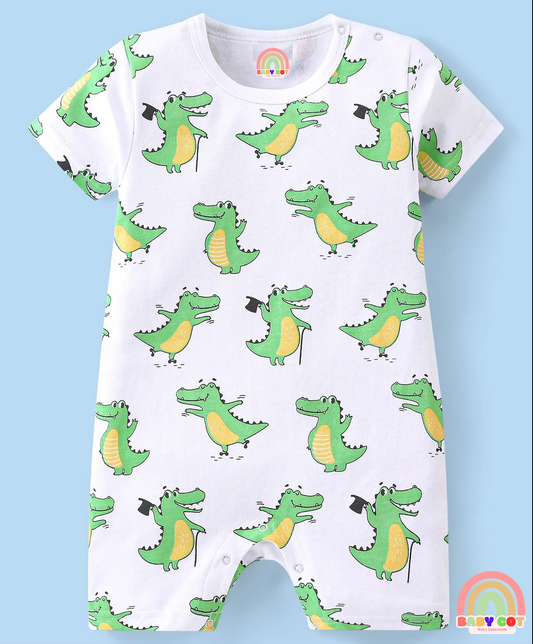 100% Cotton Half Sleeves Rompers Crocodile Print Pack of 2 - Multicolour