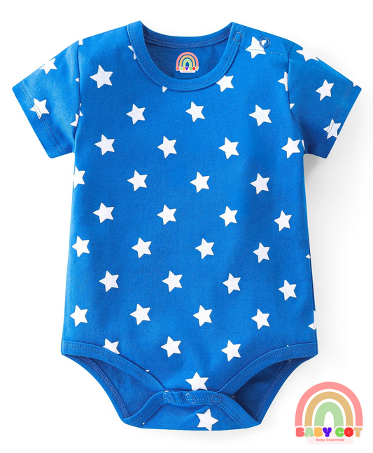 100% Cotton Knit Half Sleeves Onesies with Star & Dino Print Pack of 3 - Blue Yellow & Red