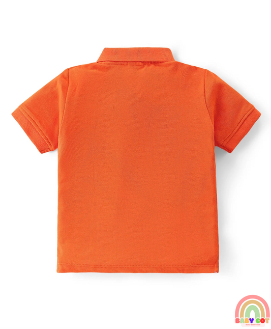 100% Cotton Knit Half Sleeves Polo T-Shirt With Solid Colour - Orange