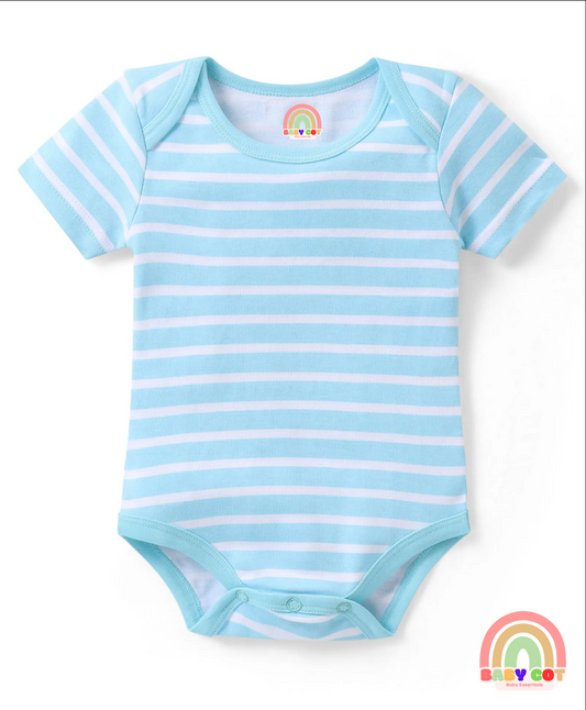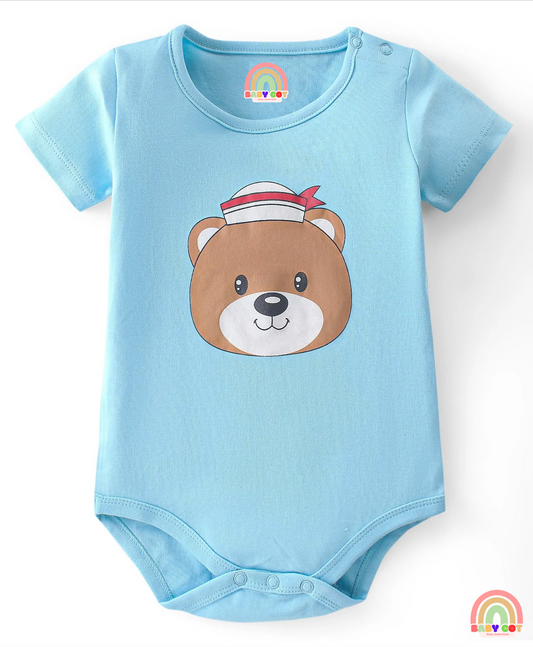 100% Cotton Knit Half Sleeves Striped & Bear Printed Onesies Pack of 3 - Multicolour