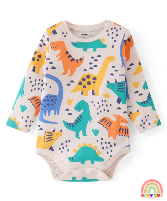 100% Cotton Knit With Eco- Jiva Finish Full Sleeves Onesies with Dino Print Pack of 5 - Blue Green & Pink