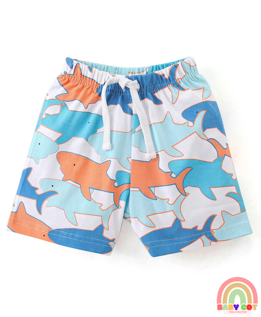 Cotton Knit Shorts with Shark & Text Print Pack of 3 - Multicolour