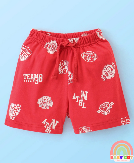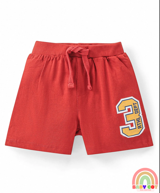 Cotton Knit Shorts with Number & Text Print Pack of 3 - Blue Red & Yellow