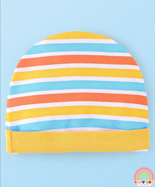 100% Cotton Cap Mittens And Booties Striped - Yellow
