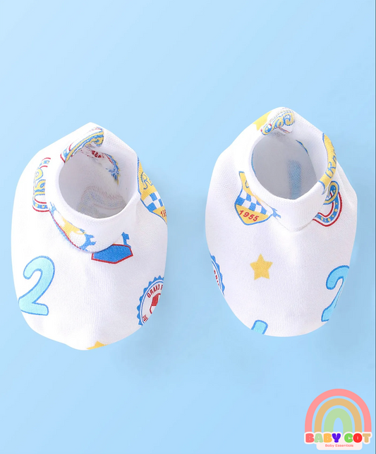 100% Cotton Knit Cap Mittens & Booties Set with Number Print - White