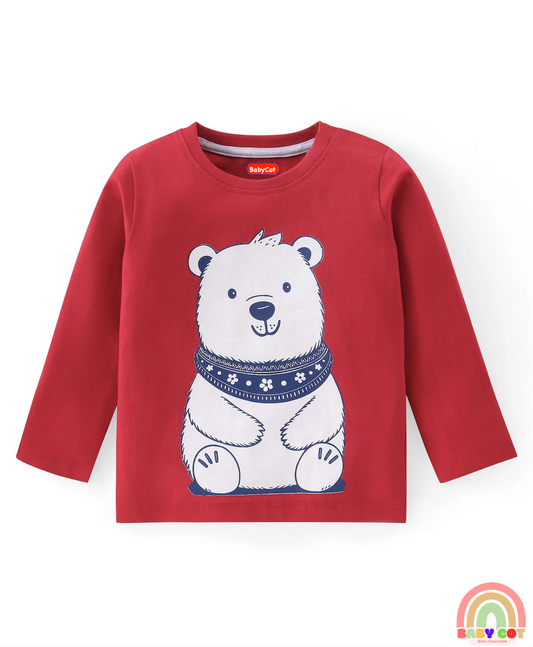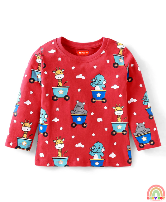 Cotton Knit Full Sleeves T-Shirts with Animal Print Pack of 2 - Red & Blue