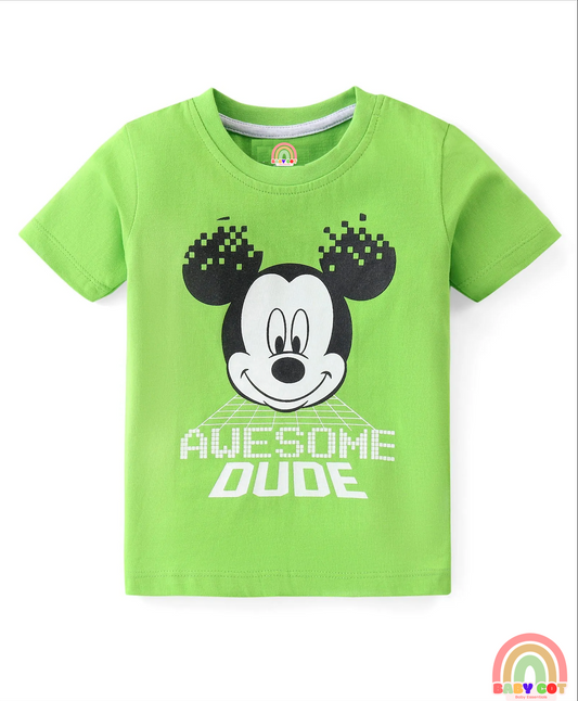 Cotton Knit Half Sleeves T-Shirt & Shorts Set With Cartoon Print - Green & Blue