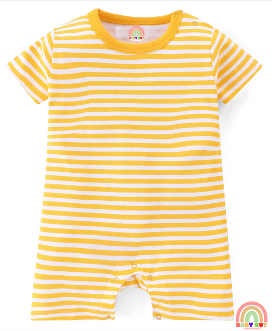 100% Cotton Half Sleeves Romper With Animals Print & Striped Pack Of 2 - Blue & Yellow