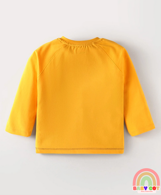 Cotton Knit Full Sleeves Striped Text & Bear Printed T-Shirts Pack of 3 - Red Yellow & Navy Blue