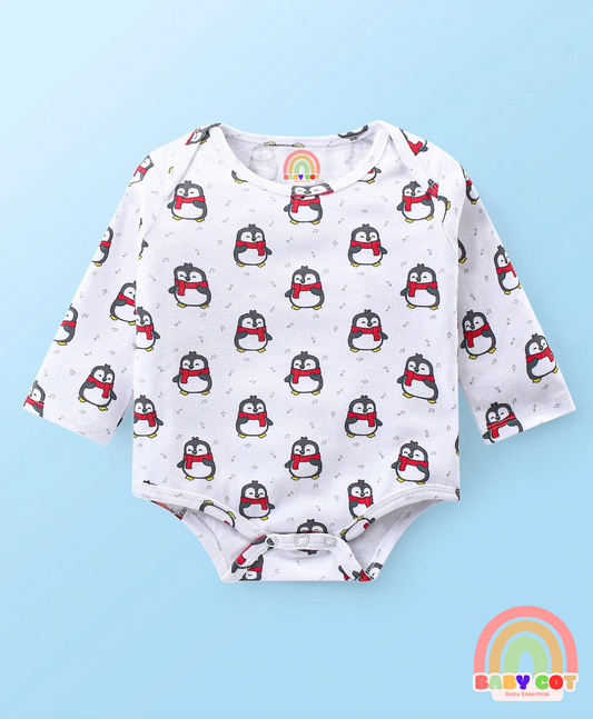 100% Cotton Interlock Knit Full Sleeves Onesies With Stripes & Penguin Print Pack of 3 -Multicolour