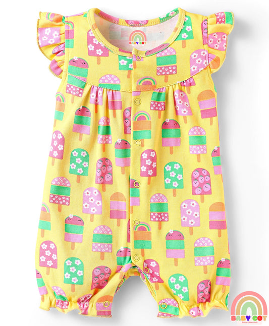 Interlock Knit Frill Sleeves Romper With Floral & Tropical Print Pack of 2 - Pink & Yellow