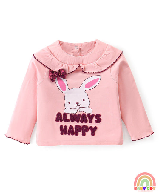 Twill Knit Full Sleeves T-Shirt & Lounge Pants Set With Bunny Print & Text Embroidery - Light Pink & Maroon