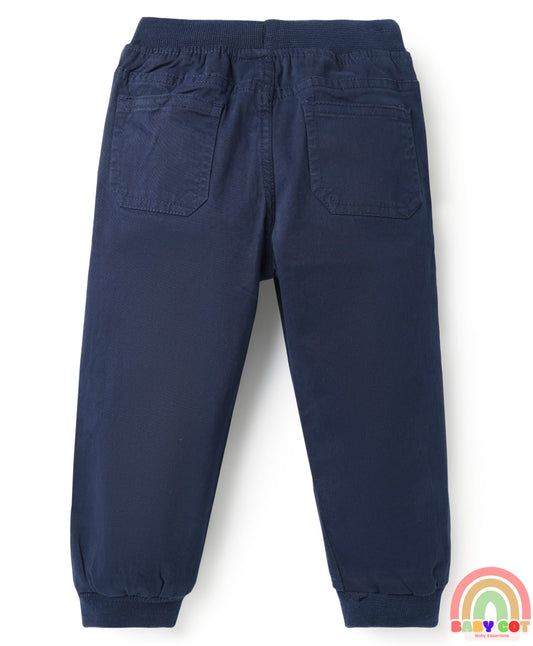 Twill Woven Full Length Solid Coloured Trousers With Stretch - Navy Blue