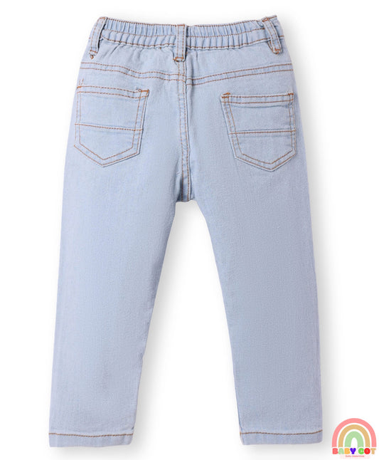 Full Length Washed Denim Jeans with Stretch & Patch Detailing - Light Blue
