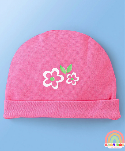 100% Cotton Cap with Knot Polka Dot & Floral Print Pack of 2 - Pink