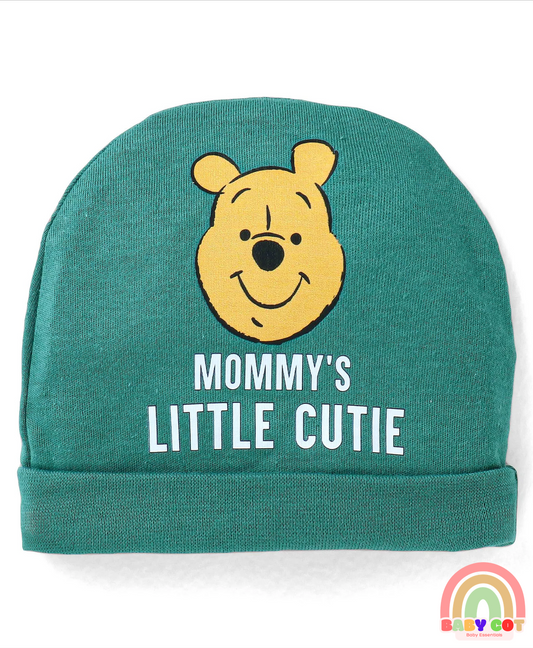 Interlock Knit Cap Mittens & Booties Set with Winnie & Friends Graphics - White