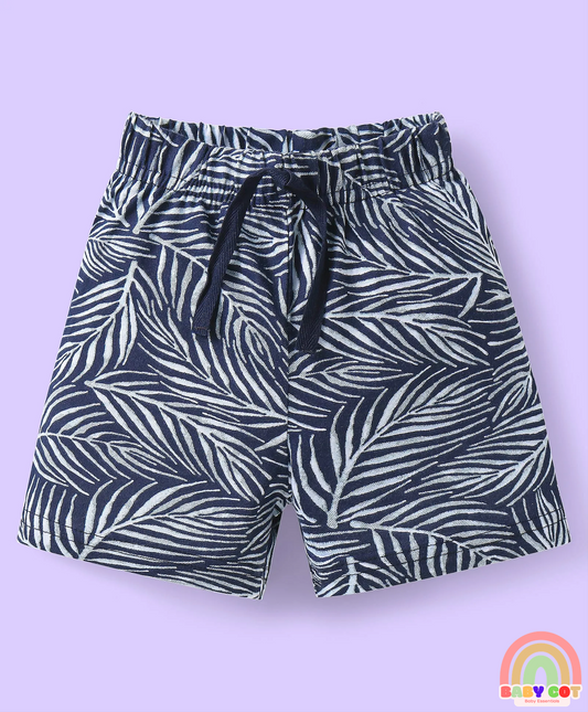 Cotton Knit Mid Thigh Shorts with Tropical Theme Print & Stripes Pack of 3 - Multicolor