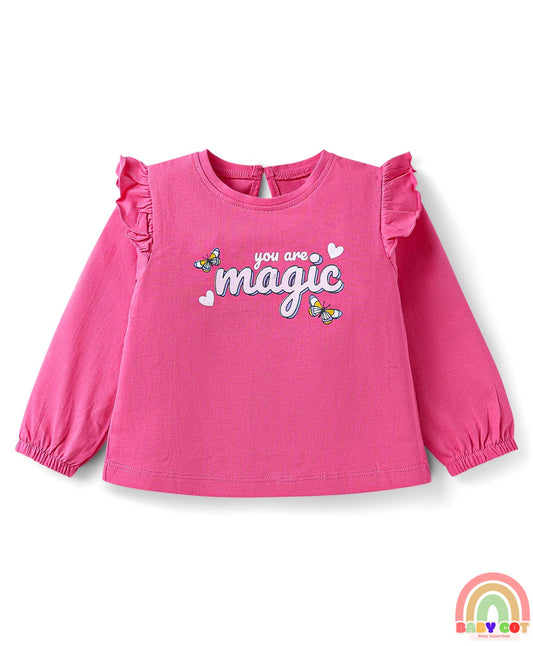 Cotton Knit Full Sleeves Hearts & Text Graphics T-Shirts with Frill Detailing Pack of 3 - Dark Pink