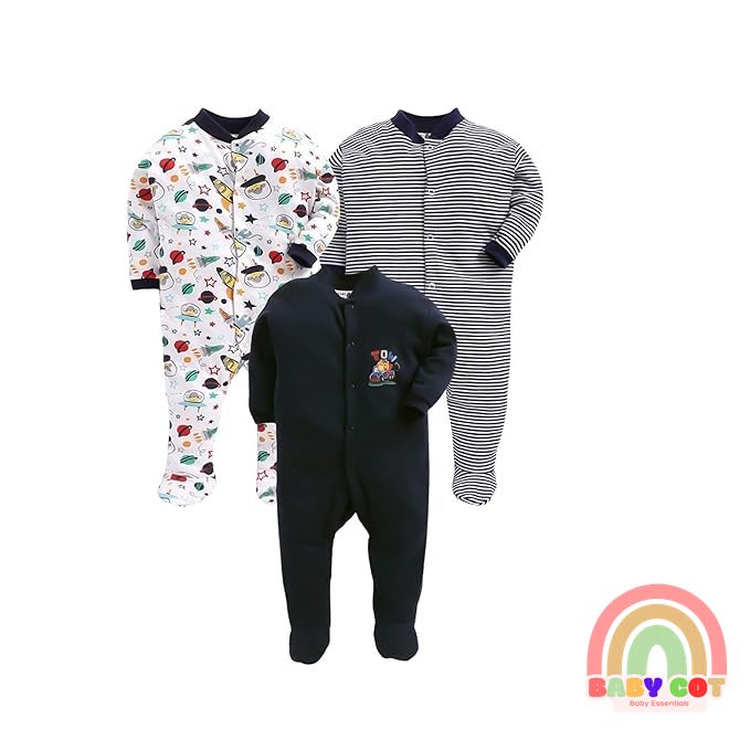 100% Cotton Black Rompers Sleepsuits Jumpsuit Night Suits for Infants Newborn Baby Boys & Girls