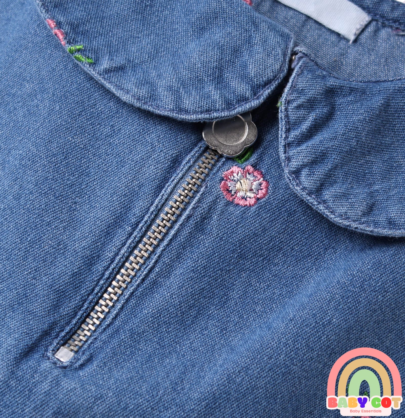 100% Cotton Half Sleeves Peter Pan Collar Top & Shorts Set with Floral Embroidery - Blue