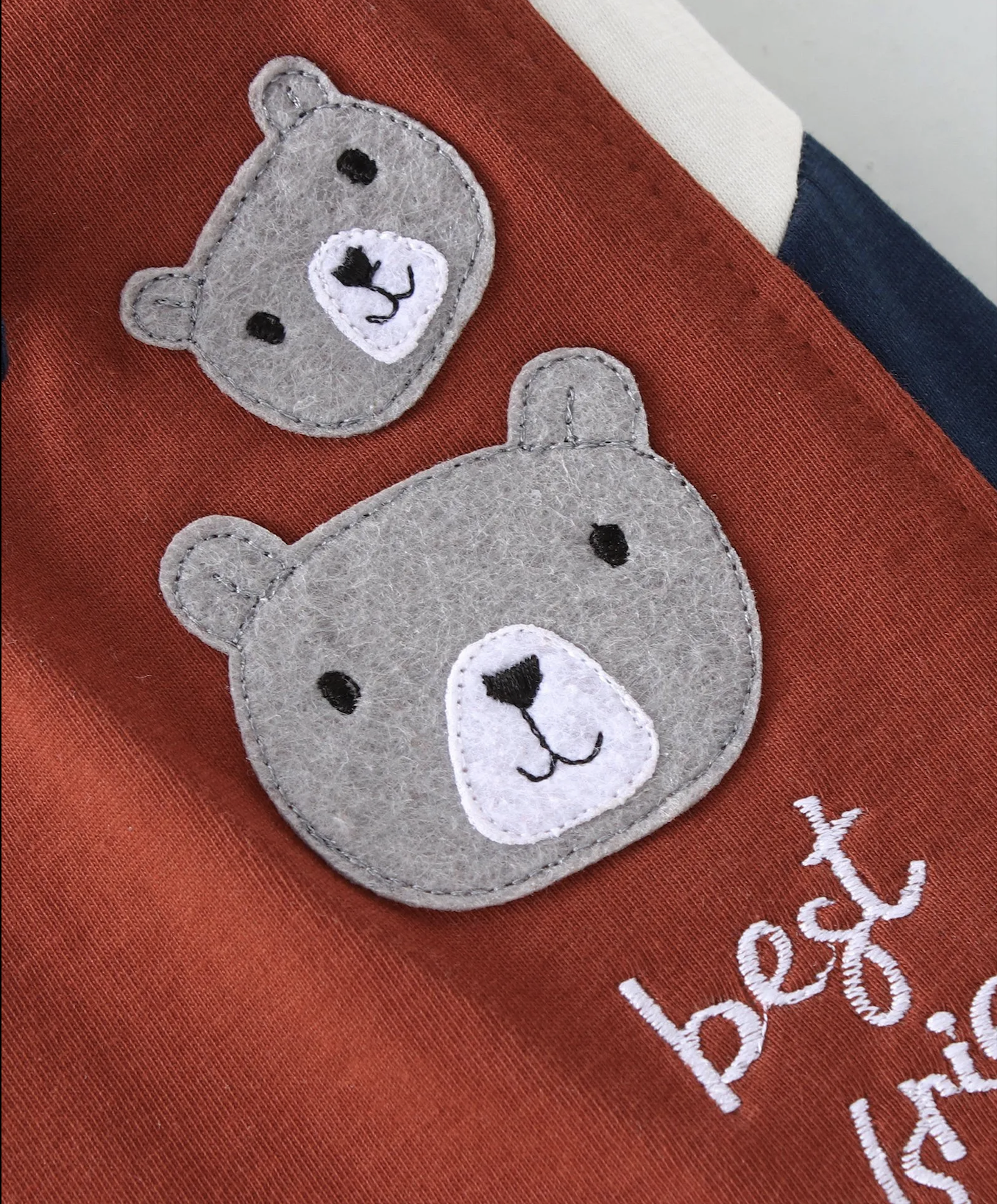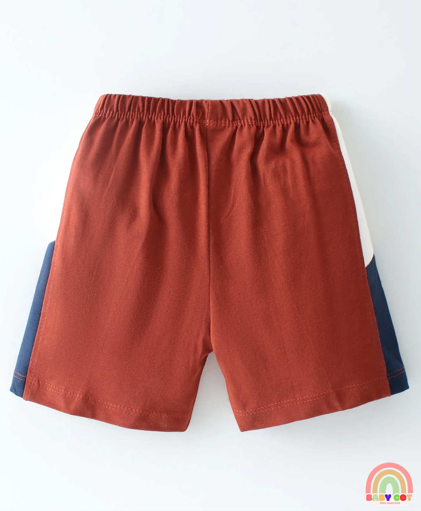 100% Cotton Half Sleeves Striped T-Shirt and Shorts Set Teddy Patch - Navy Blue