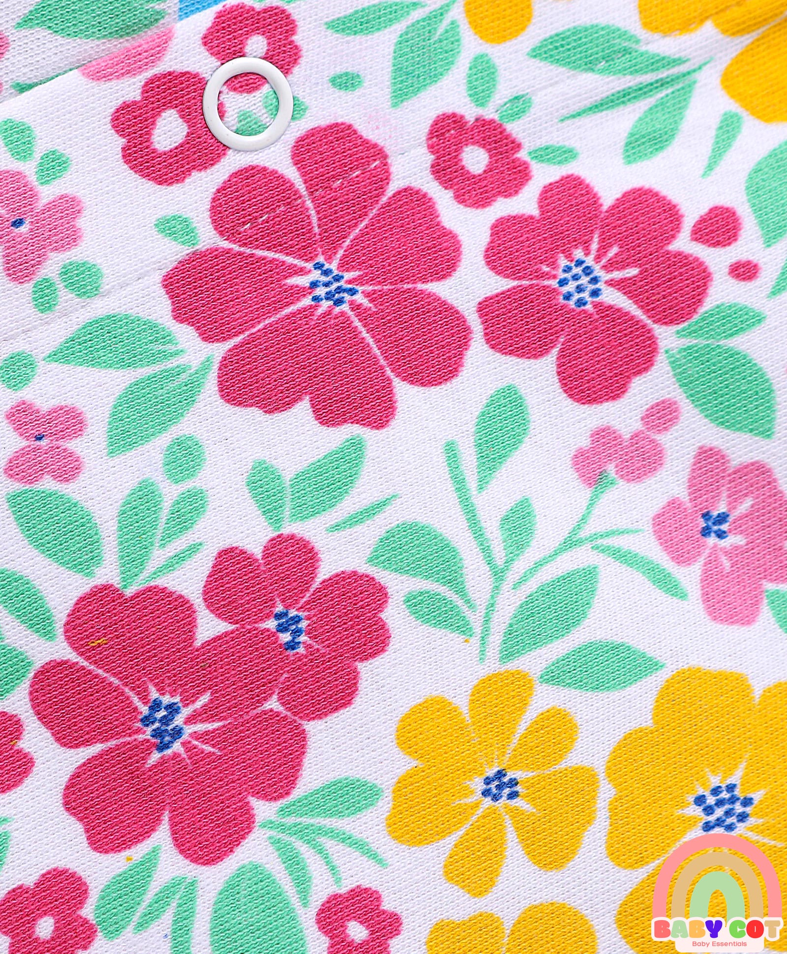100% Cotton Knit Frill Sleeves Romper with Polka Dots & Floral Print Pack of 2 - Pink & White