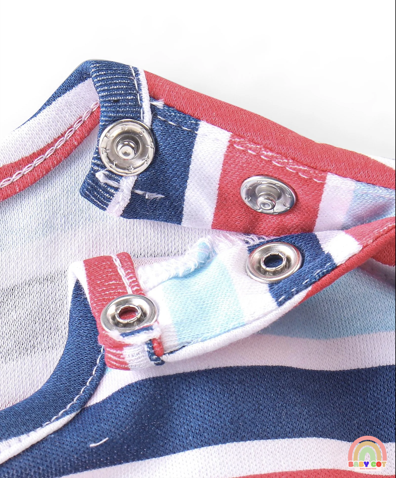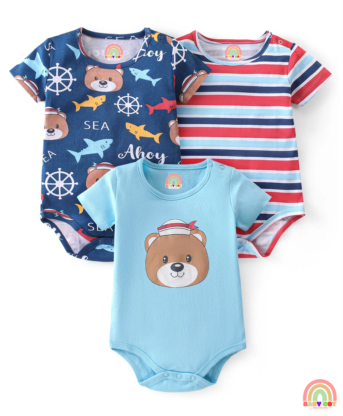 100% Cotton Knit Half Sleeves Striped & Bear Printed Onesies Pack of 3 - Multicolour