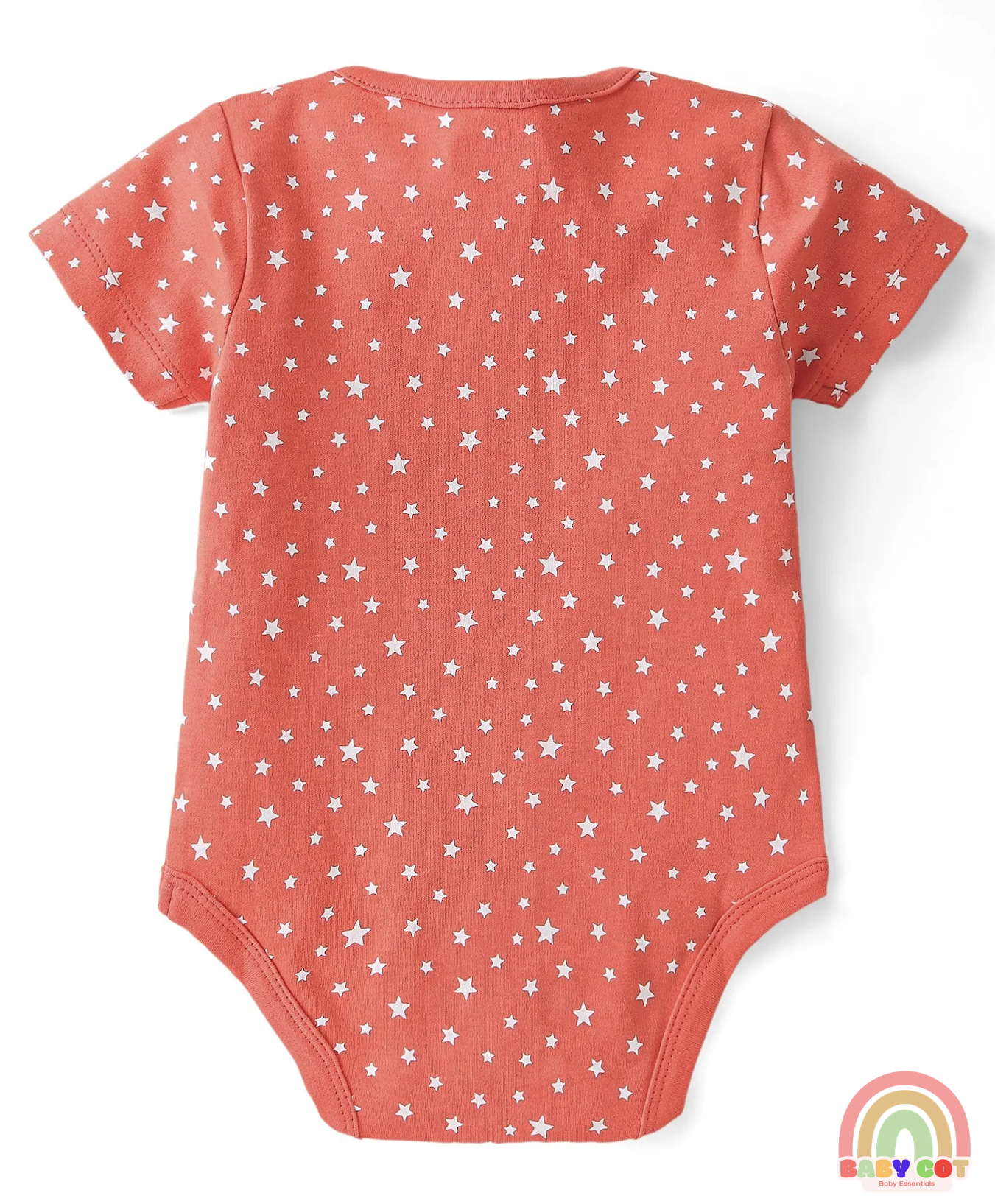 100% Cotton Knit Half Sleeves Striped & Lion Printed Onesies Pack of 5 - Multicolour