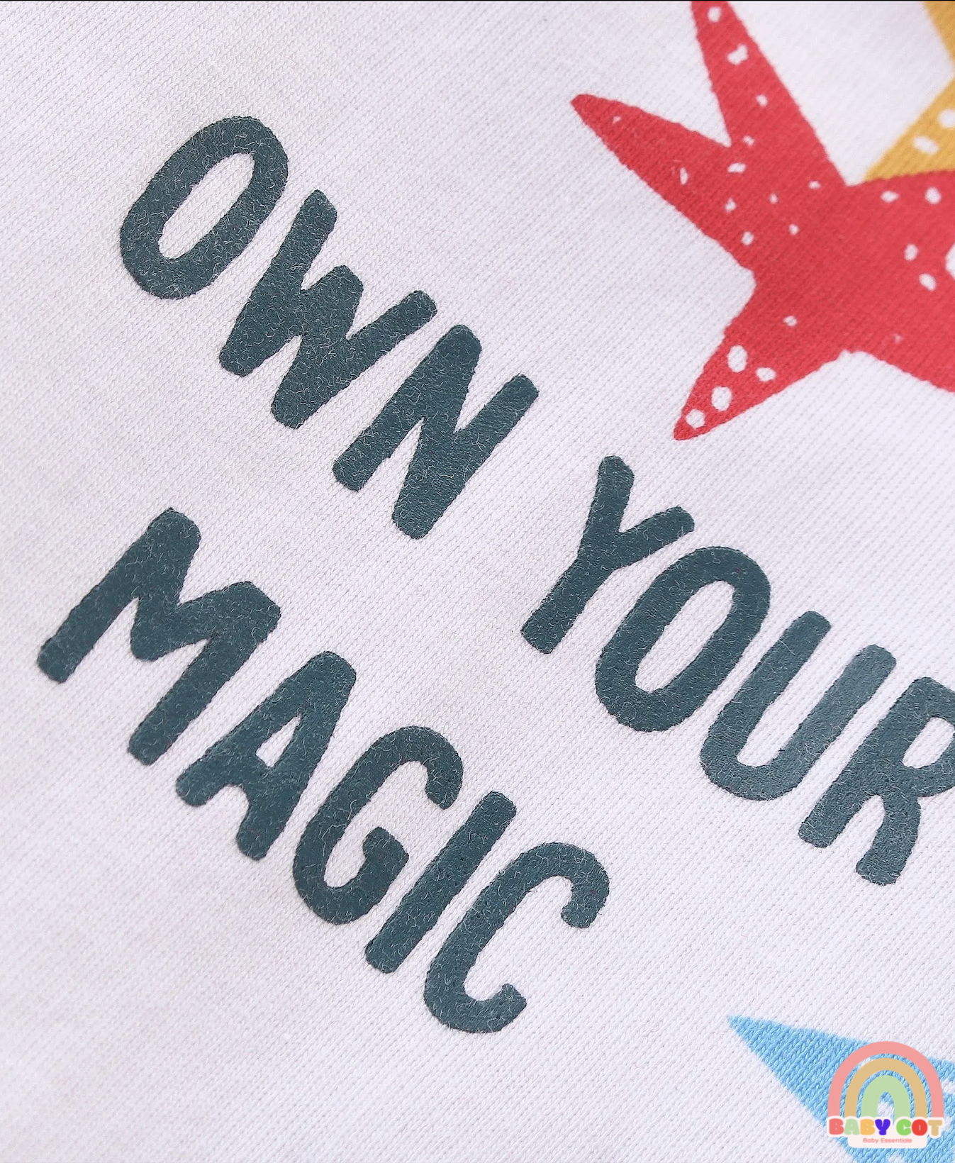 100% Cotton Knit Half Sleeves T-Shirt & Shorts With Star Print - White & Navy Blue