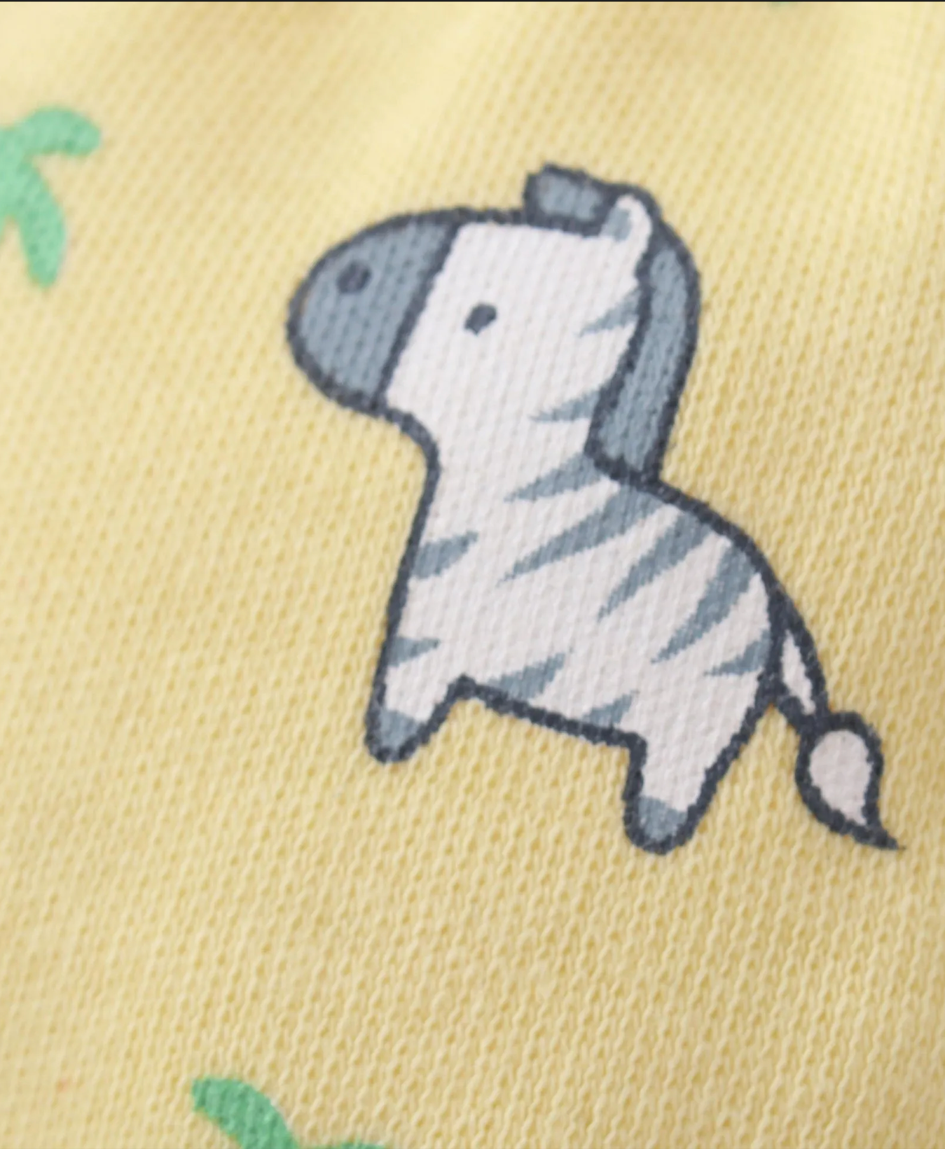 100% Cotton Knit Zebra Printed Cap Mittens & Booties Set - Yellow