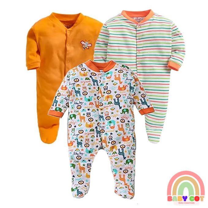 100% Cotton Orange Rompers Sleepsuits Jumpsuit Night Suits for Infants Newborn Baby Boys & Girls