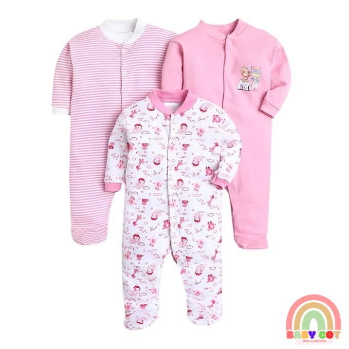 100% Cotton Pink Rompers Sleepsuits Jumpsuit Night Suits for Infants Newborn Baby Boys & Girls