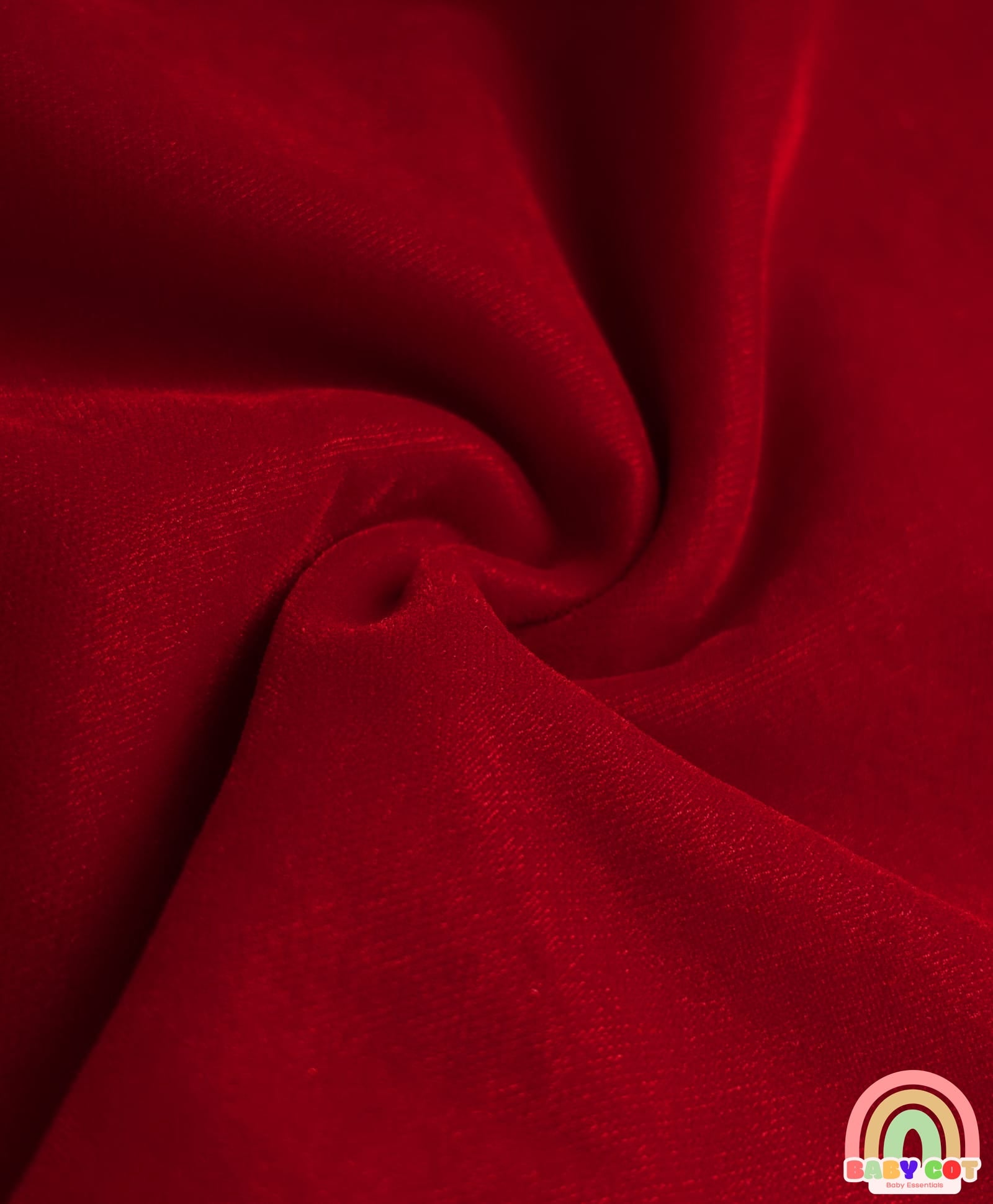 Cotton Knit Frock & Full Balloon Sleeves Inner Tee With Bow Applique - Red & White