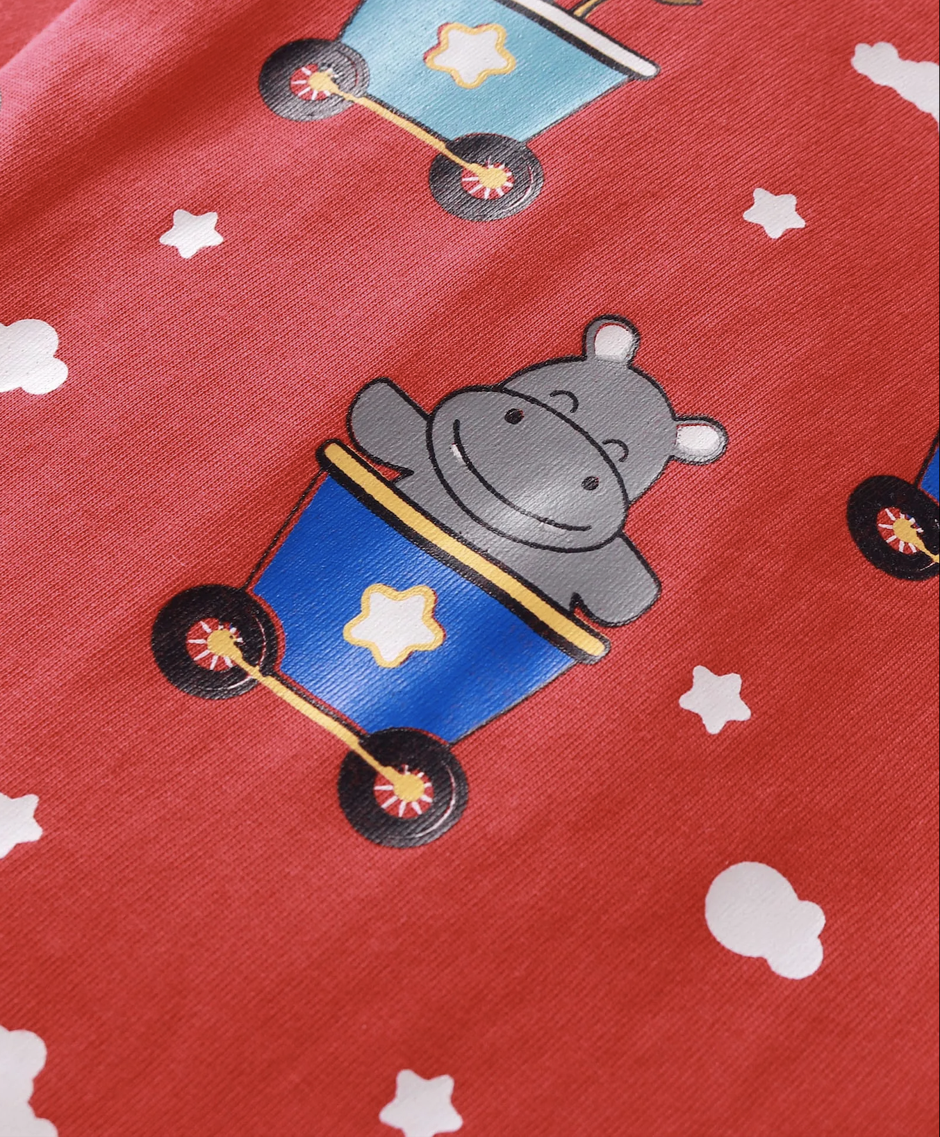 Cotton Knit Full Sleeves T-Shirts with Animal Print Pack of 2 - Red & Blue