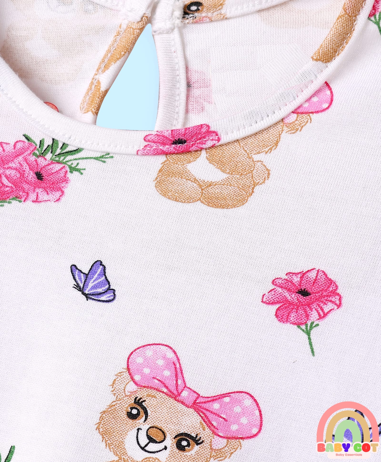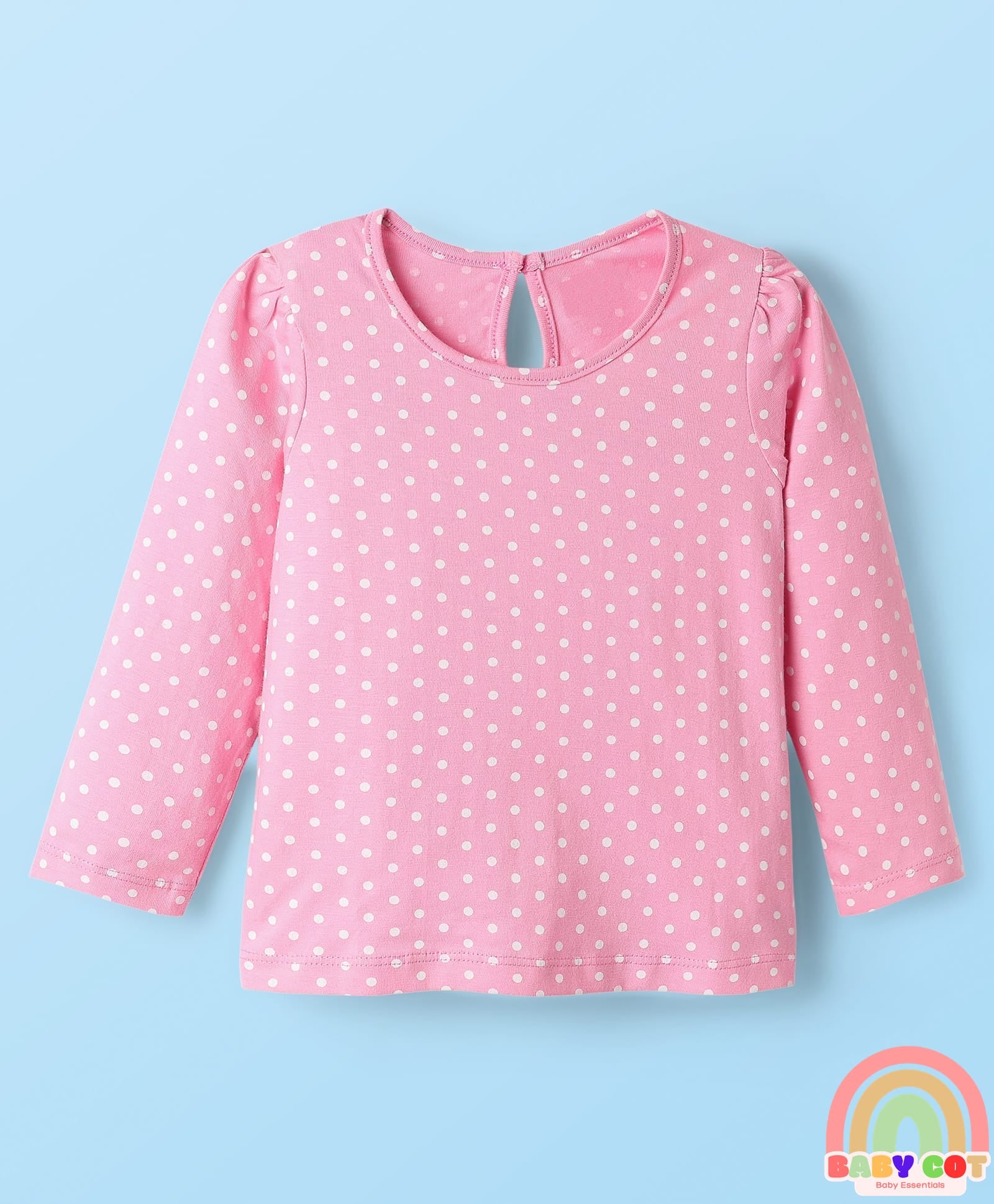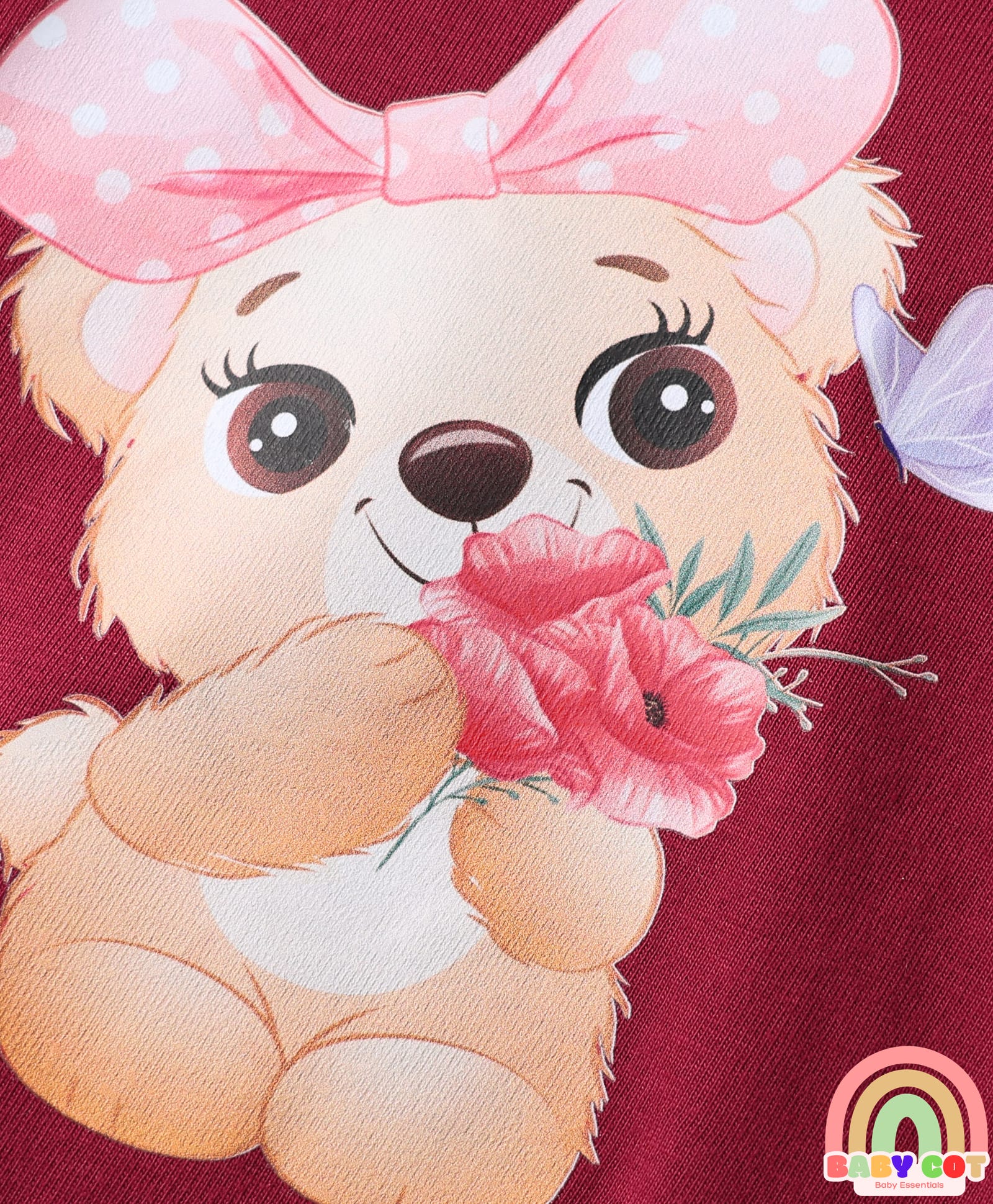 Cotton Knit Full Sleeves T-Shirts With Bear & Polka Dot Print Pack of 3 - Pink & Maroon