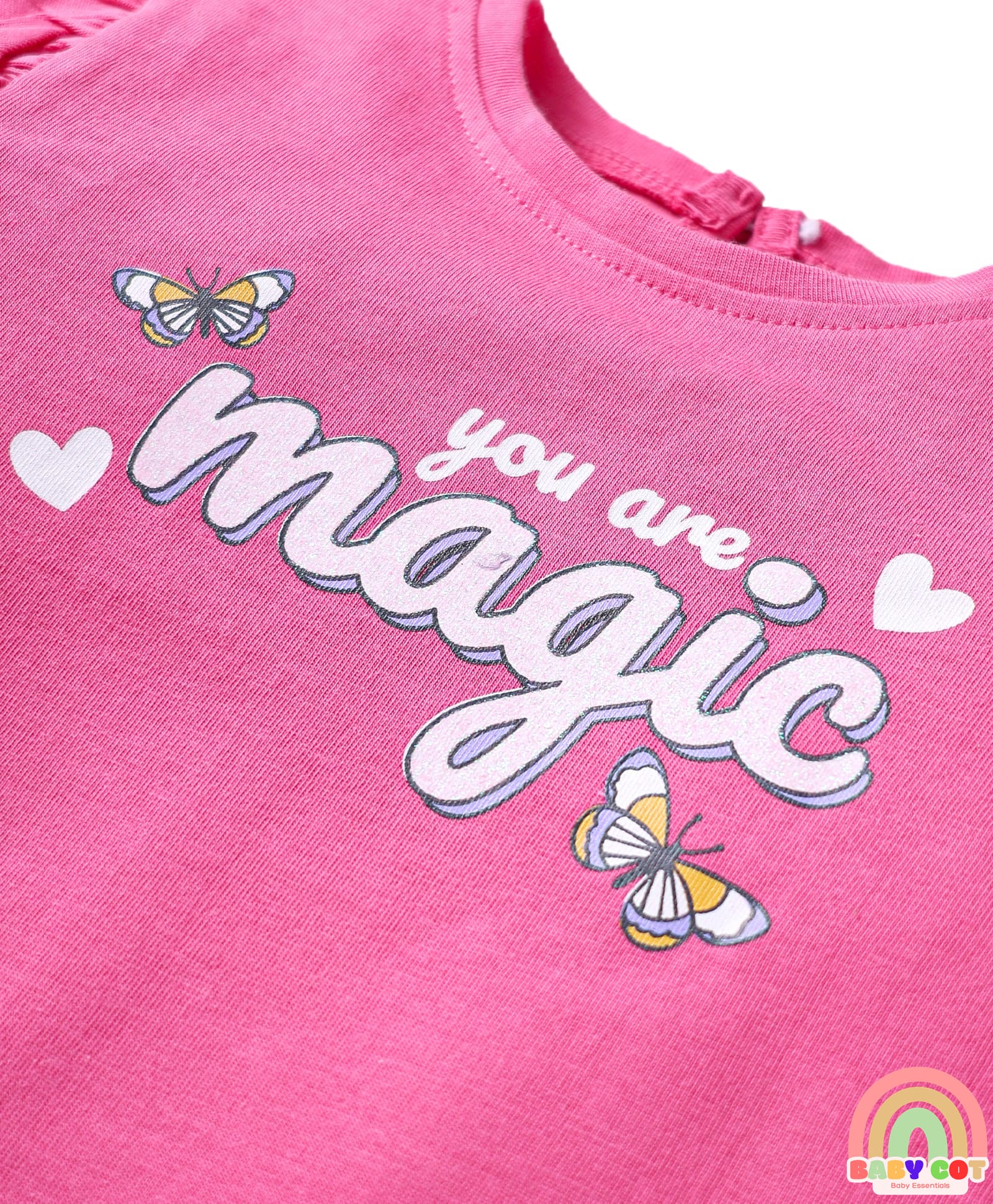 Cotton Knit Full Sleeves T-Shirts With Heart & Butterfly Print Pack Of 3 - Pink & Purple