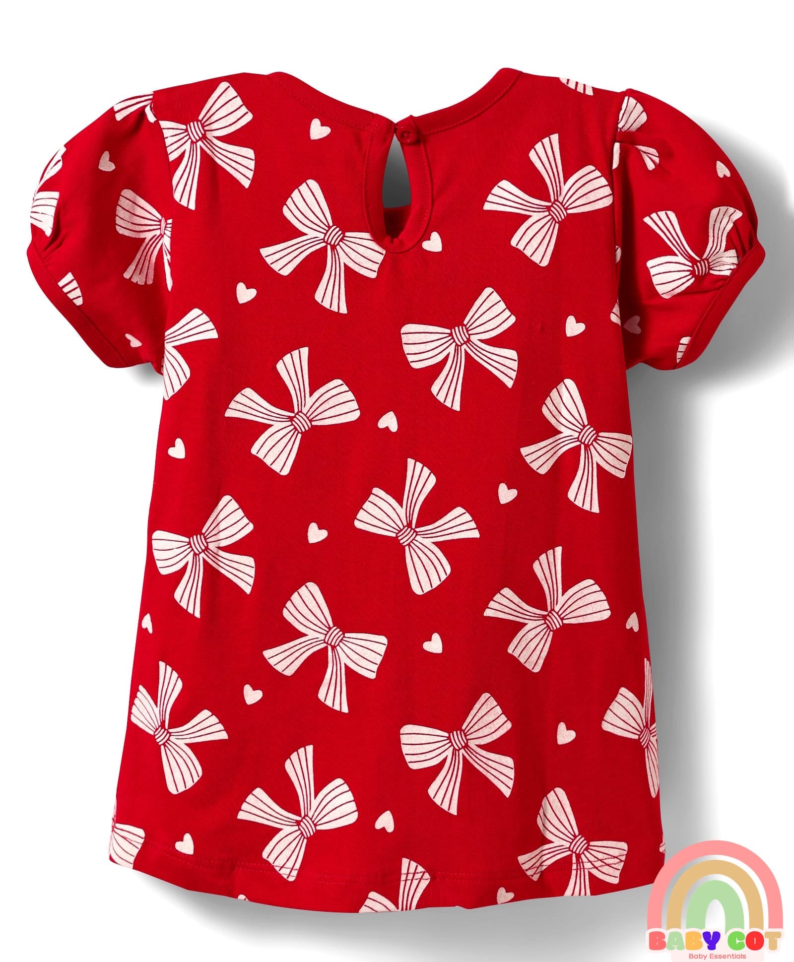 Cotton Knit Half Puffed Sleeves T-Shirts with Bow & Heart Print Pack of 3 - Red White & Navy Blue