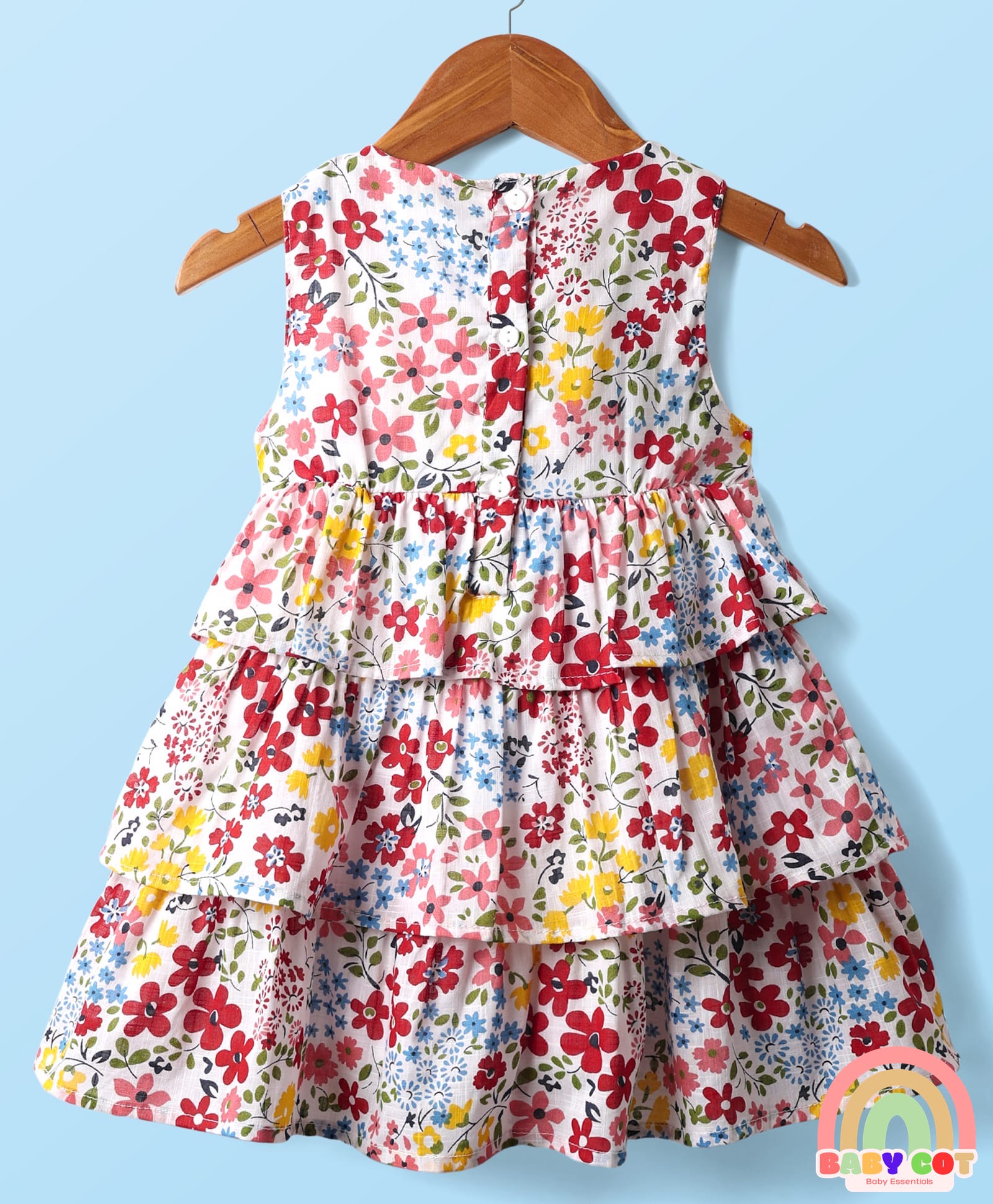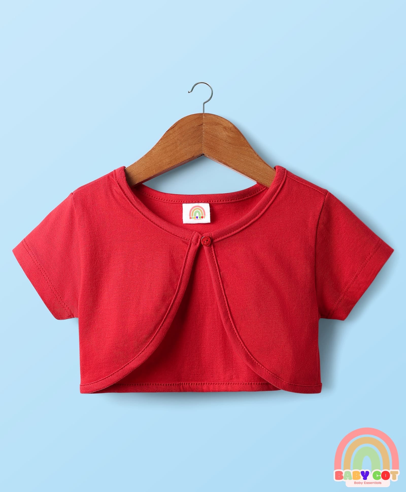 Cotton Knit Half Sleeves Shrug With Floral Printed Layered Frock with Bow Applique - Red