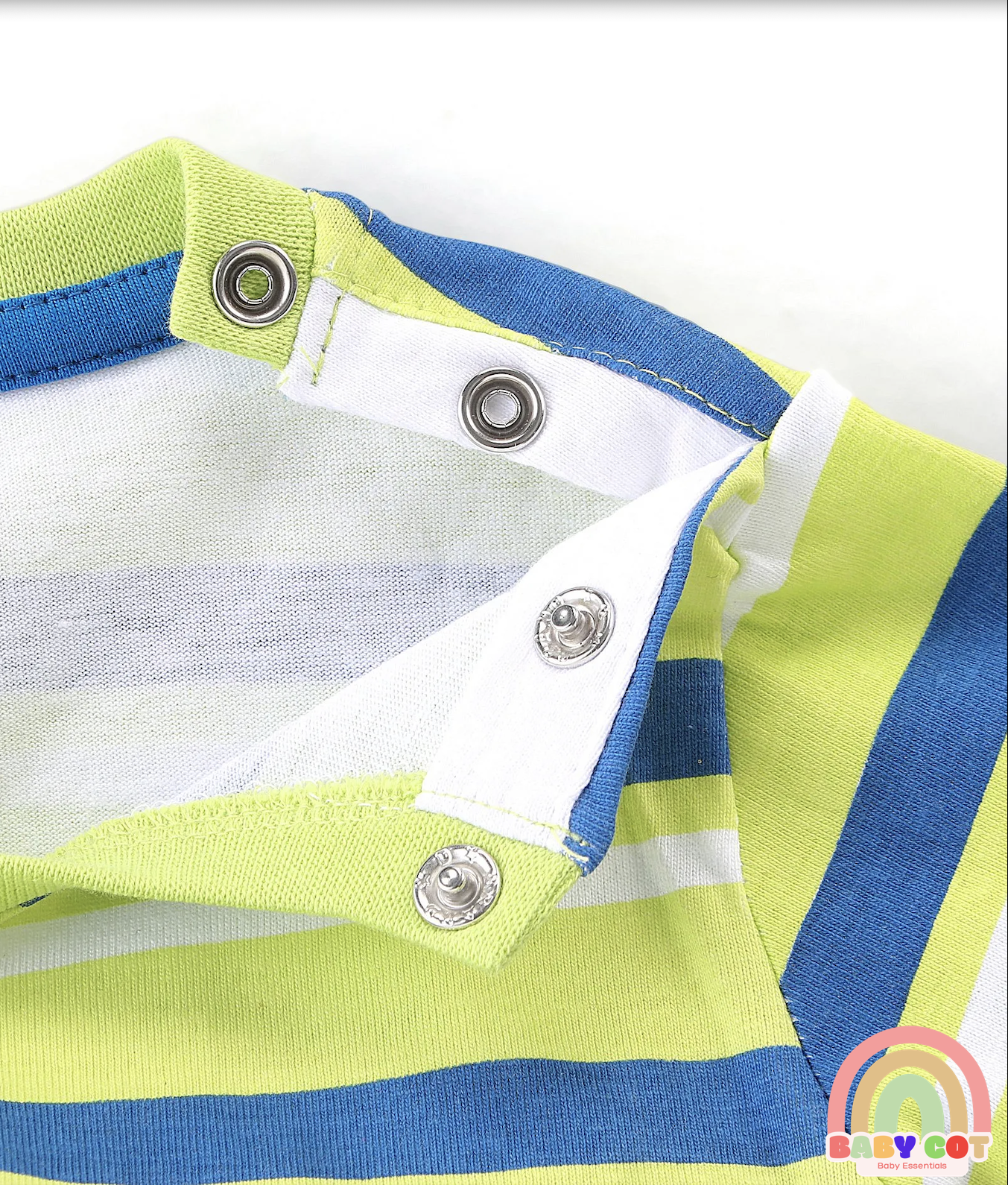 Cotton Knit Half Sleeves Striped T-Shirts Turtle Print Pack of 3 - Multicolour
