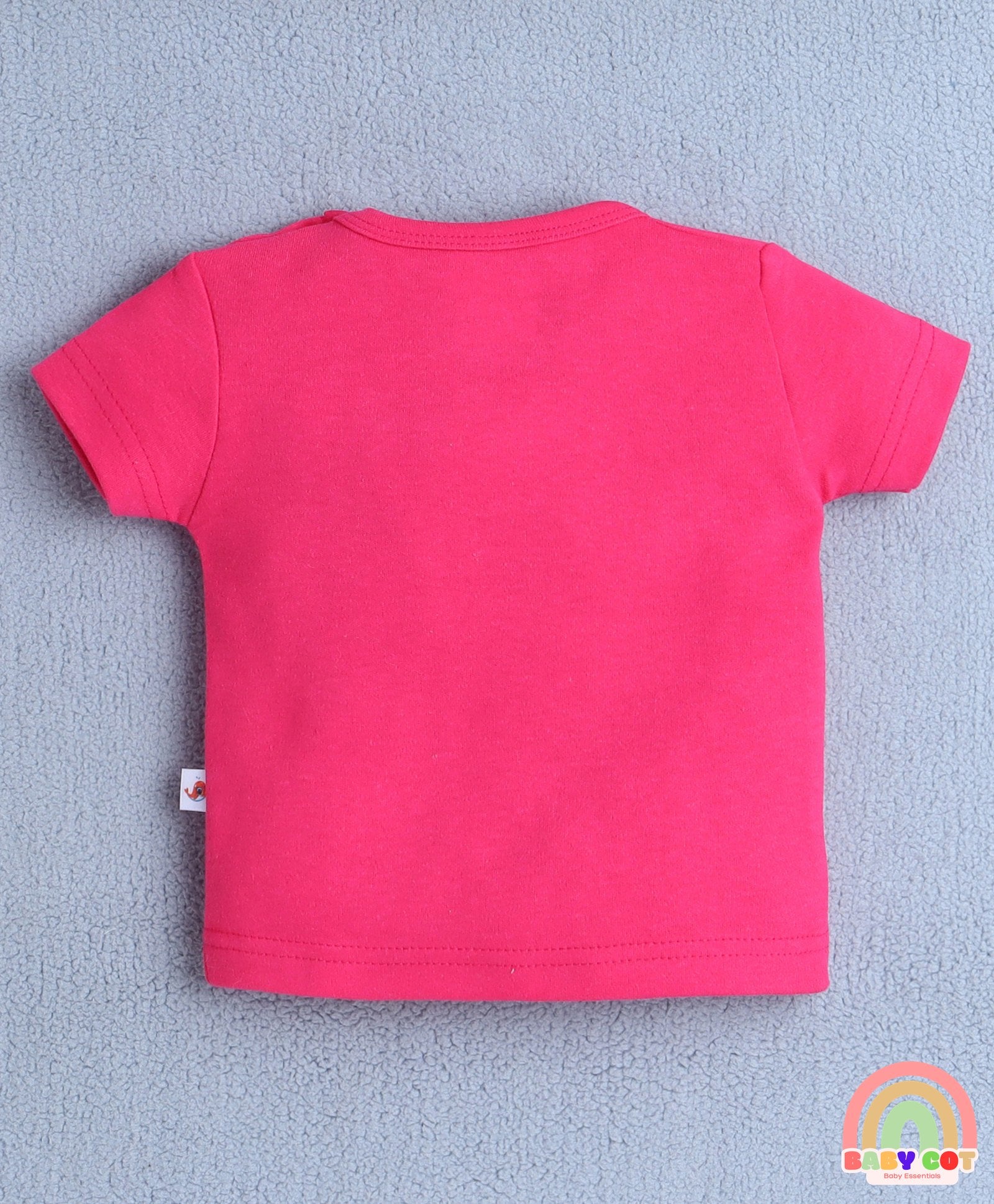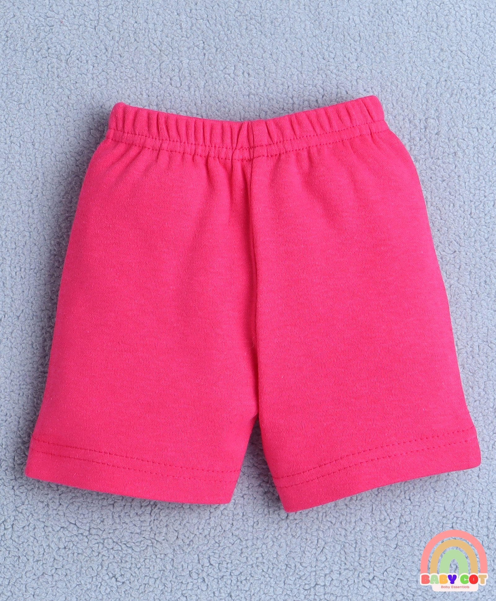 Cotton Knit Half Sleeves Unicorn Printed Tee & Shorts Set - Pink