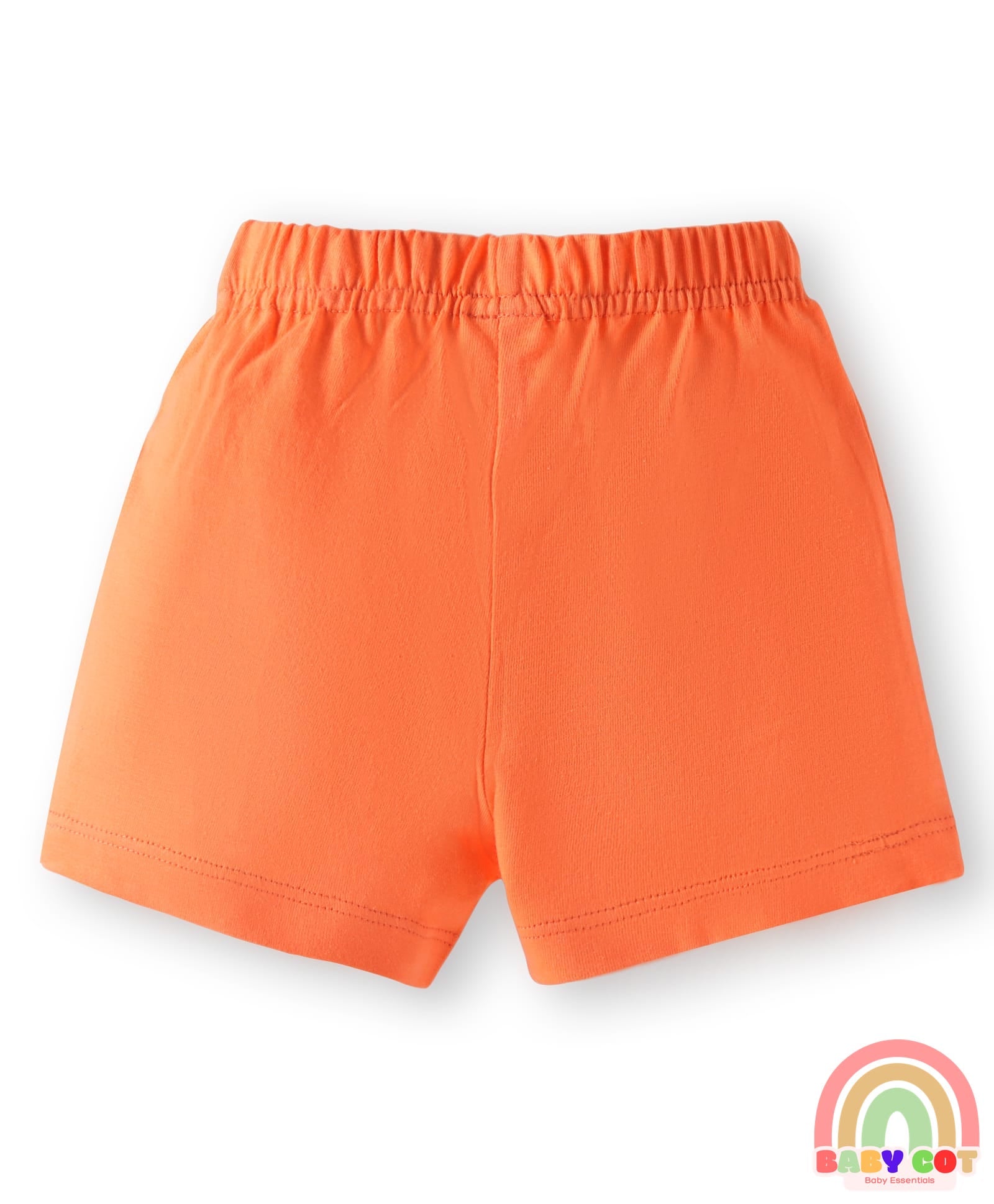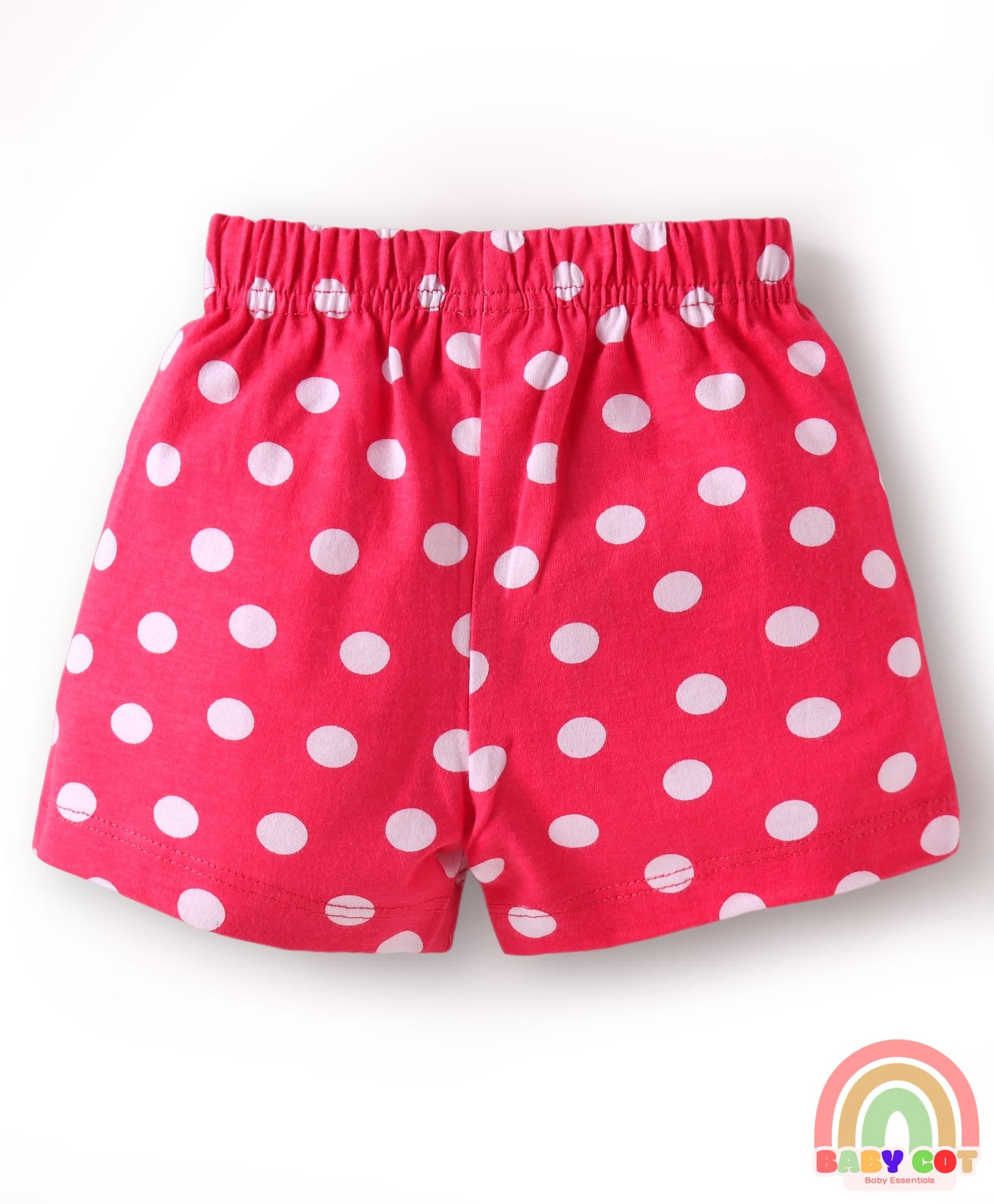 Cotton Knit Mid Thigh Polka Dots & Floral Printed Shorts with Bow Applique Pack of 3 - Navy Blue Pink & Orange