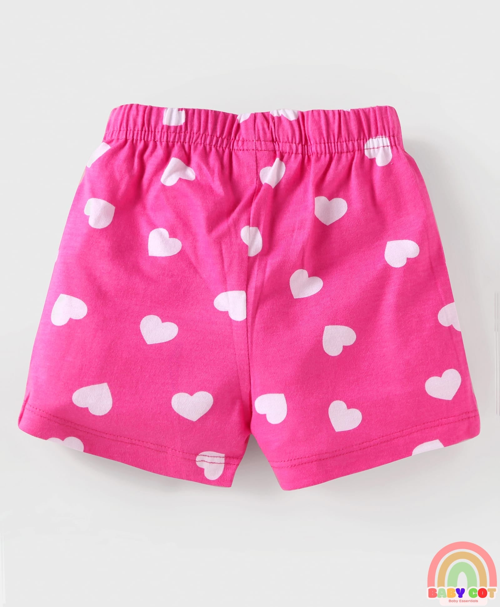 Cotton Knit Mid Thigh Shorts with Floral & Heart Print with Bow Applique Pack of 3 - Pink & Light Blue