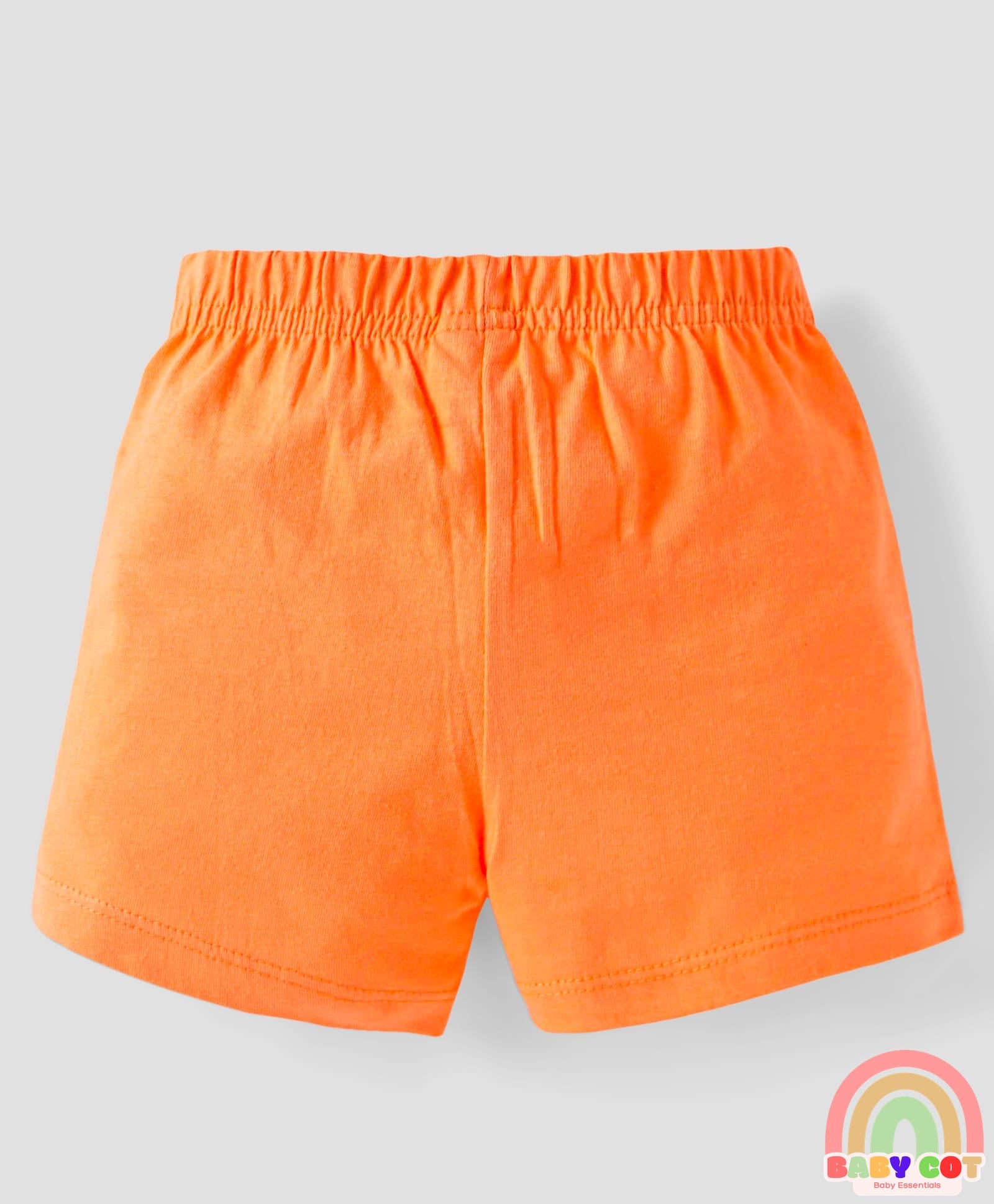 Cotton Knit Mid Thigh Shorts With Polka Dots & Birds Print with Bow Applique Pack of 3 - Blue Pink & Orange