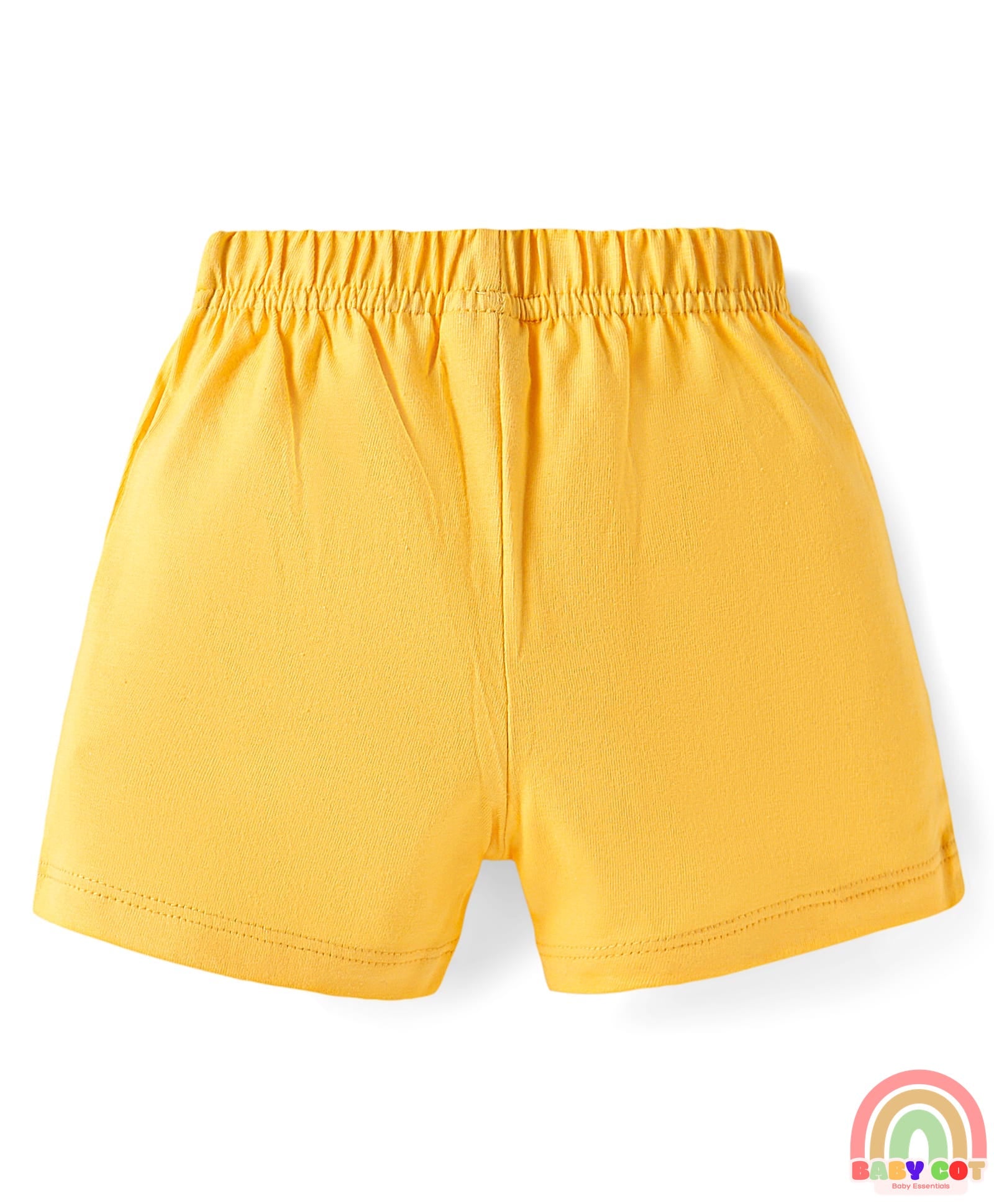 Cotton Knit Mid Thigh Strawberry & Floral Printed Shorts with Bow Applique Pack of 3 - Pink & Yellow