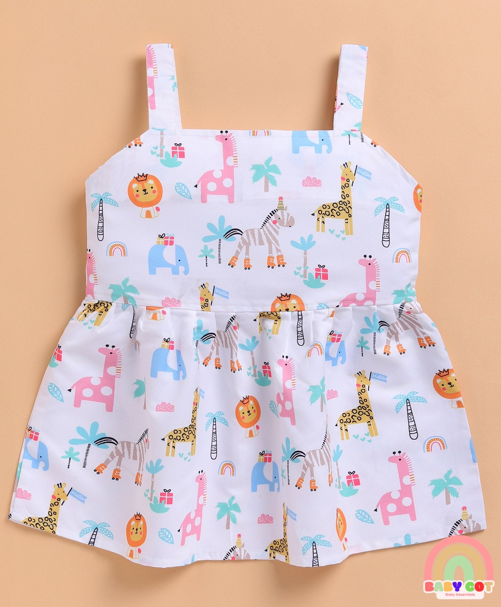 Cotton Knit Pack Of 3 Sleeveless Floral & Baby Animals Printed Dresses - Multi Colour