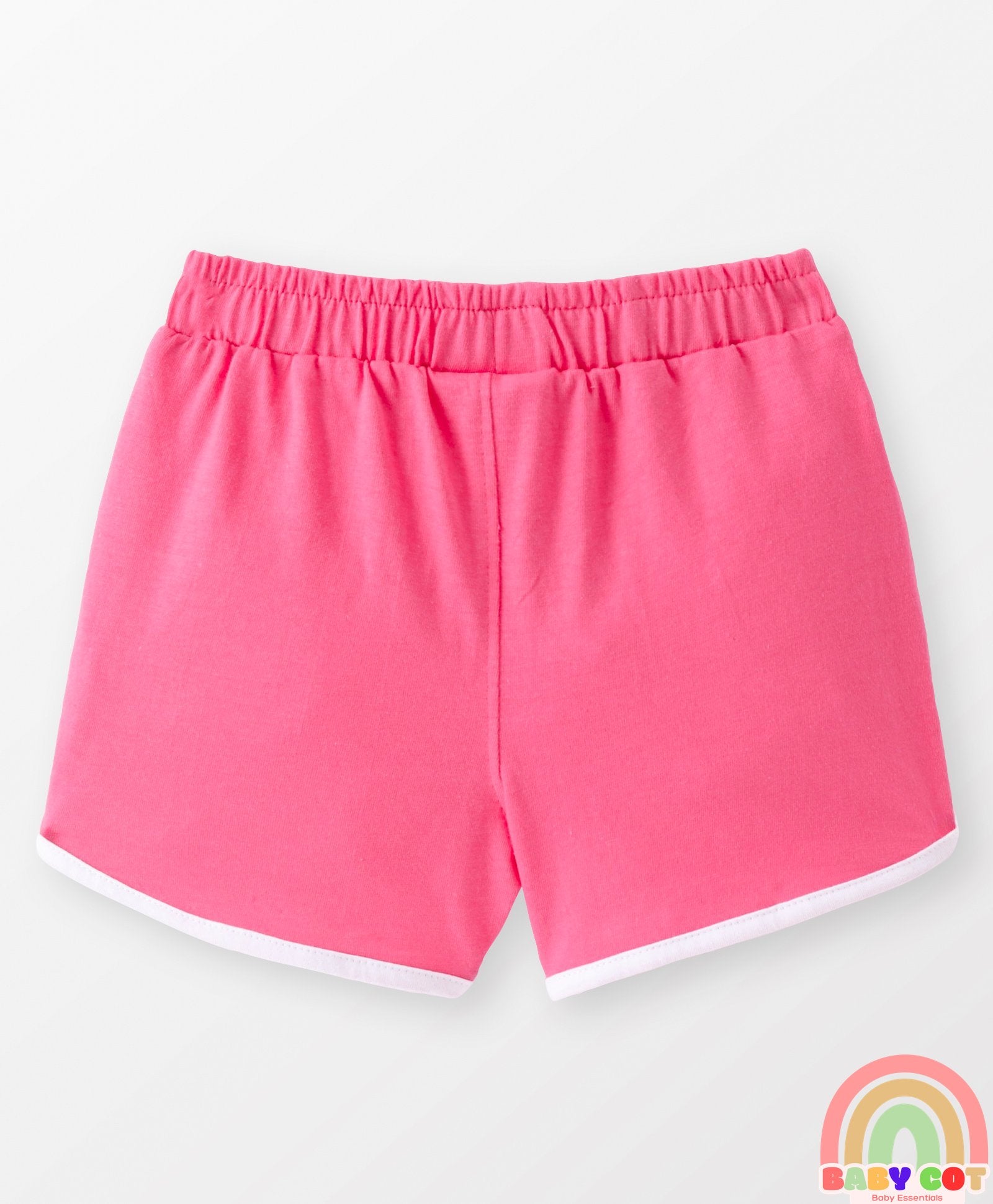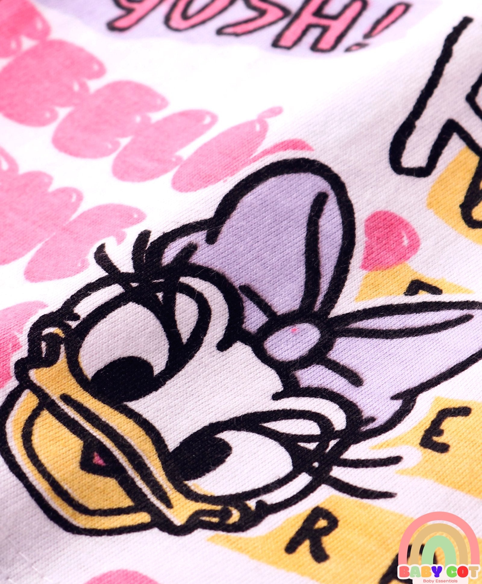 Cotton Knit Sleeveless Top & Shorts Set With Minnie Mouse Graphics & Knot Detailing - Multicolor
